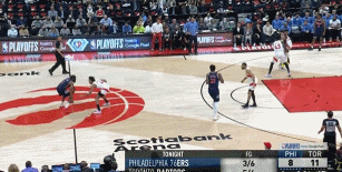 在哈登的组织串联下,76人上半场在篮下10投9中,并且得到11次罚球机会全中。不过猛龙也没那么好对付,防守端76人采取联防,猛龙虽然没有三分手感(上半场14投3中),但前场篮板依然是对付联防的最佳武器,而且他们深喑此道,上半场抓下10个前场篮板,比76人多出手11次,也正是如此,上半场76人也只以62比61领先。