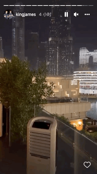 詹姆斯晒出了几段在迪拜游玩的视频,视频中詹姆斯与妻子、友人在迪拜地标建筑哈利法塔(世界最高建筑,828米)前尽情畅饮。