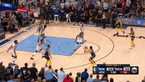 一旦狼队内线顶不住,那么就要用协防和夹击去填坑,而用人头填坑就意味着,总会出现空缺。这时候灰熊再继续轮番冲击,三分机会不就出来了?