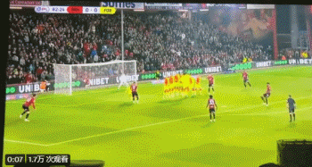 全场比赛唯一进球,出现在第83分钟。伯恩茅斯踢出了一次非常精彩的战术任意球配合,比林禁区弧顶没有选择射门,而是把球塞到禁区左侧。有华裔血统的威尔士高中锋摩尔,右脚冷静推射将球送入球门右下角。摩尔在第59分钟替补出场,他是今夜伯恩茅斯的升级功臣。