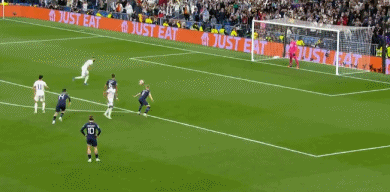 本场比赛皇马和本泽马一度都没有拿出最佳表现,上半场皇马全队0射正。下半场又被曼城打进一球,总比分3-5落后。但在全场比赛第90分钟,卡马文加挑传到禁区左侧,本泽马插上甩开防守球员后凌空横敲,助攻罗德里戈射门得分。随后罗德里戈再进一球,帮助皇马将总比分扳平,比赛进入加时赛。