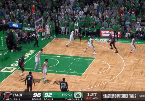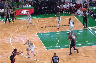 凯尔特人最近两场开局都在给自己挖坑,上一场开场被热火打了18-8,今天回到主场是一个更夸张的24-7,不得不说,在这轮已经打完的三场比赛里,热火的赛前准备与和专注度始终高绿军一筹,尤其这场加了三分buff,效果更加明显。