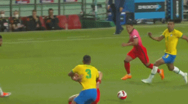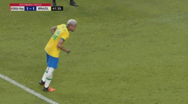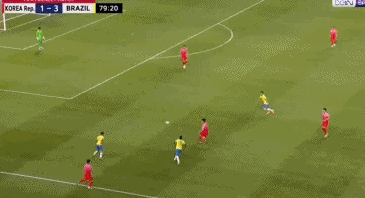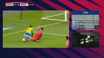 第40分钟,裁判观看VAR后最终判定韩国后卫禁区内踢倒桑德罗,点球!内马尔主罚轻松骗过金承奎将球送进大门!2-1!