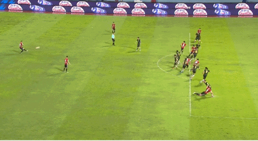 第11分钟,于大宝后场长传吊入禁区内,梅米舍维奇禁区内左侧头球摆渡,阿德本罗倚住后卫,皮球被后卫解围,晋鹏翔弧顶附近一脚远射,皮球打在防守球员身上折射入网,国安1-0成都。