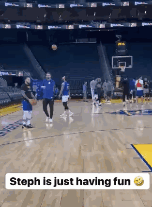 NBA TV配文:“库里在训练时玩耍🤣”
