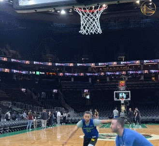 勇士官推晒出了一条视频,视频中,库里和训练师配合,完成了一记空接上篮。