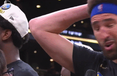 颁奖典礼上,克莱抓耳挠腮,歪嘴摇头说:“我的乖乖,这一切太疯狂了!”随后他感谢了库里和格林在自己大伤期间的鼓励和陪伴。
