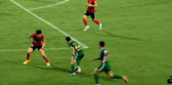 第18分钟,浙江队反击,弗兰克带球突破到禁区左侧,随后扣过两名球员后起脚低射,球被对方封堵。