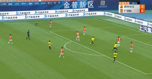 第18分钟,武汉长江的刘云杀入禁区左侧底线附近倒三角回传,蒋光太解围解围不远,卡耶维奇禁区内迎球左脚劲射破门,武汉长江1-0领先。