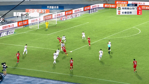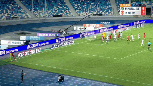 第84分钟,河南左侧角球机会,杨帅前点一蹭,后门柱位置的韩东射门被封堵,再补射得手,河南6-2亚泰彻底杀死比赛。
