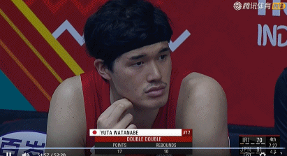 本场比赛,渡边雄太只打了3节,出战了26分钟,15投6中得到17分10个篮板1个助攻,正负值是-21,全场最低。