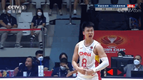 在顾全命中底角三分球后,赵睿也抓住机会,同样轰进一记三分球,中国队领先11分打停印尼队。进球后的赵睿兴奋地怒吼,并跃起与顾全撞在一起庆祝。