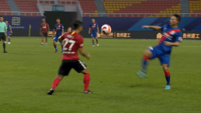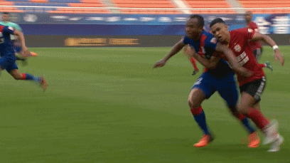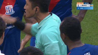 第16分钟,申花后场长传到前场左侧,曹赟定杀入禁区底线附近,在和毛开宇的对抗中倒地,主裁马宁果断判罚点球,而后VAR介入,马宁亲自跑到场边观看回放,取消点球!