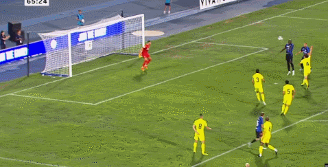 第36分钟,戈森斯左路挑传到禁区内,卢卡库头球破门,国米扳平比分,1-1!↓