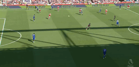 第55分钟,莱斯特门将沃德出击解围传中球时和福法纳配合失误,热苏斯横传,扎卡推射进空门,3-1,阿森纳迅速恢复两球领先优势。