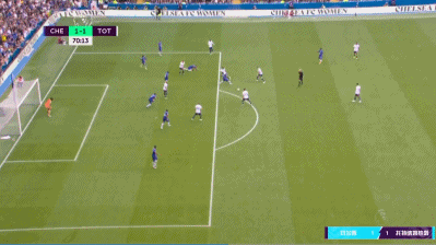 第68分钟,哈弗茨在前场带球时被本坦库尔从身后踢倒,哈弗茨向裁判示意对方犯规,但裁判没有判罚。随后热刺继续进攻,并由赫伊别尔远射破门,而且当时热刺球员还存在越位阻挡门将视线的嫌疑。切尔西主帅图赫尔和球员们围住主裁判安东尼-泰勒抗议,但安东尼-泰勒和VAR裁判沟通后依然判罚进球有效,热刺1-1扳平。热刺主帅孔蒂在庆祝时还和切尔西主帅图赫尔发生冲突,两人各吃一张黄牌。