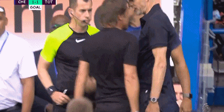 在热刺扳平比分后,图赫尔与孔蒂在场边发生了第一次冲突。图赫尔认为热刺的进球存在争议,他对于此前哈弗茨倒地后裁判没有任何表示感到非常愤怒。于是,两大名帅在场边进行了激烈的互喷,双方多人卷入其中,但事态最终没有闹大。裁判给孔蒂和图赫尔分别一张黄牌。