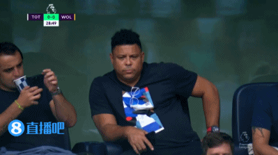 直播吧8月20日讯 在今晚结束的英超第3轮比赛中,热刺主场1-0战胜狼队。比赛中,转播镜头特别切到了观众席,巴西传奇球星罗纳尔多入镜。