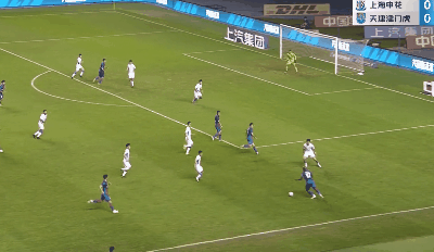 第15分钟,上海申花取得领先,巴索戈右路传中,津门虎防守球员的解围见高不见远,禁区内彭欣力头球摆渡,汪海健弧顶处不作调整直接起左脚低射,皮球直奔左下死角,1-0!