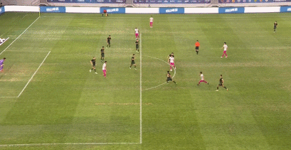 第34分钟,于汉超禁区左侧突破,梅米舍维奇脚底打滑倒地后将其铲倒,主裁判张龙判罚点球。2分钟后,巴索戈操刀主罚点球,推射球门左下角得手。