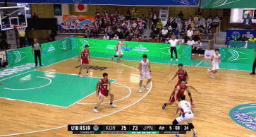 下半场回来,还是韩国队先得分,此后两队多次打平,后半段日本队稍微领先,三节战罢,日本队领先64-59领先韩国5分。
