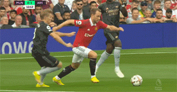 马丁内利反击破门,却因埃里克森被犯规在先而进球无效↓
