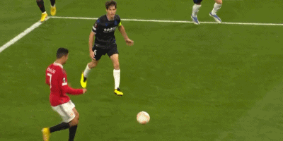 可惜,C罗已经不再是曾经那个无所不能的锋霸了。如今的葡萄牙巨星在比赛中更多的时候给人一种力不从心的感觉。比赛第13分钟,达洛特后场直塞,C罗获得单刀球,他随即带球向前冲去。然而,C罗的速度明显不快,后卫很快就追了上来,实现了超车。无法直接射门后,C罗试图变向,但被后卫破坏……