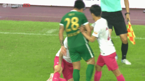 而赶过来的主裁,手中拿着的黄牌,被两人顶牛时给打飞了,一旁的边裁则是赶紧拉开了朱宝杰,岳鑫则痛苦的捂着脸倒在地上。
