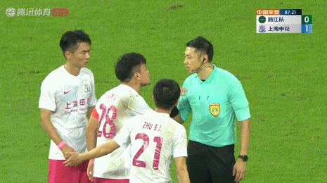 第85分钟,王东升传中,疑似碰到了申花队长曹赟定的手臂上,主裁判最终在查看了VAR之后判给了浙江队点球,穆谢奎点射将比分扳平。