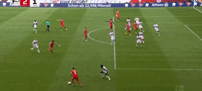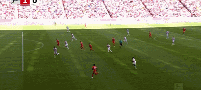 第36分钟,基米希中场长传,阿方索-戴维斯左路摆脱防守,切入禁区倒三角回传,特尔冷静推射破门,1-0,拜仁主场领先。17岁136天的特尔,射进了首个德甲进球,他也是代表拜仁在德甲进球的最年轻球员。