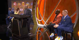 56岁的蒂姆-哈达威在父母陪伴下穿上了名人堂标志性的橙色外套,开心地比划了胯下换手的动作,回忆起自己的峥嵘岁月。