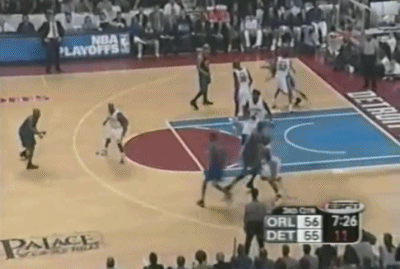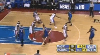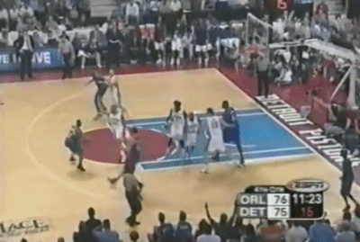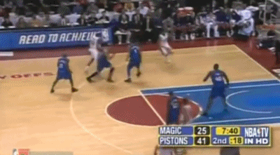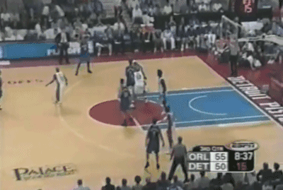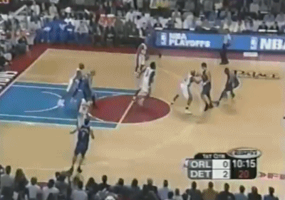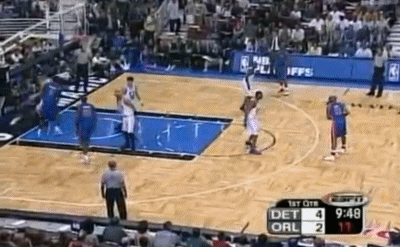 而对于麦蒂的防守,活塞继续采用上一场下半场开始使用的包夹+联防策略,尽量试图孤立麦蒂,让他和全队失去联系(某些回合,他们甚至用到了BOX-1),结果第一节麦蒂虽然自己6投3中得到8分效率不算低,但魔术全队却失去节奏,被活塞一波31-14直接教做人。