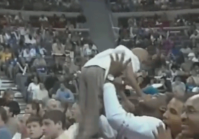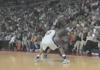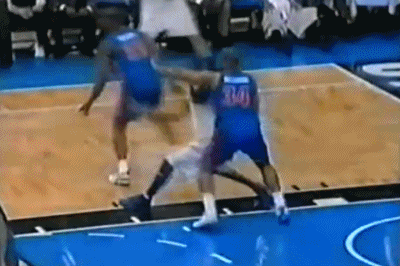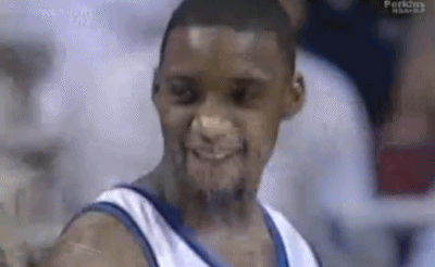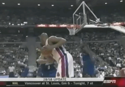 不知道是不是听到了这段采访,第四节一上来麦蒂被对方一个锁喉直接拿下——这就是季后赛,这就是第四节,这是超级巨星收比赛的时候,对手那管你那么多嘻嘻哈哈。