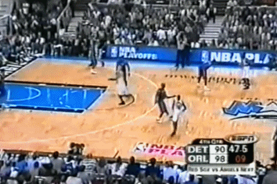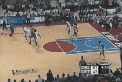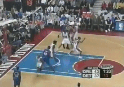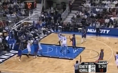 公正的说,虽然贡献了这个非常精彩的扣篮,但麦蒂第二节打的并不出色,不过因为有古登、坎普的活跃表现,魔术队却一直压着活塞打,古登不可思议的在上半场完全压制了大本,而老坎普居然还找到机会扣了一个篮。