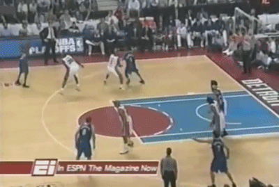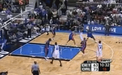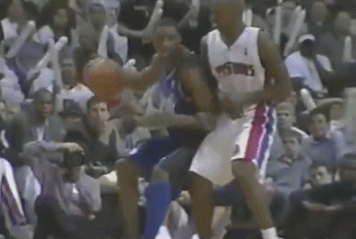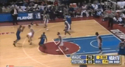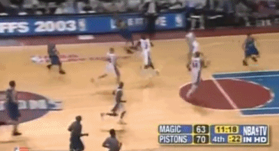 此时比赛像两个人在水中搏斗,谁先把头从水面下露出来谁占先机,而作为超级巨星,麦蒂率先找到了自己的办法……在前三次持球进攻都失手之后,他开始通过空手走位等手段找出手的机会,活塞的铁桶阵逐渐失效。