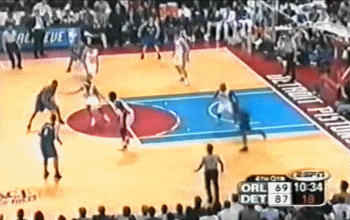 打到这个时候,落后两位数的魔术已经进退失据,进攻端唯一打得好的是半场已经拿了14分11篮板的古登(而麦蒂只有14中4,得10分3助攻)。活塞这边却四处开花,比卢普斯虽然被麦蒂换防后只有6投2中,但靠罚球增益(7中7,其中5个是转换进攻和错位中打古登和惠特尼,)半场得到19分,普林斯14分,汉密尔顿12分。