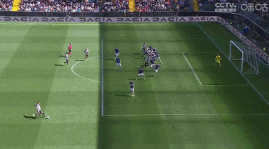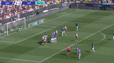 第5分钟,巴雷拉主罚任意球直接攻门,皮球精准攻入飞入球门左上角!国米1-0!