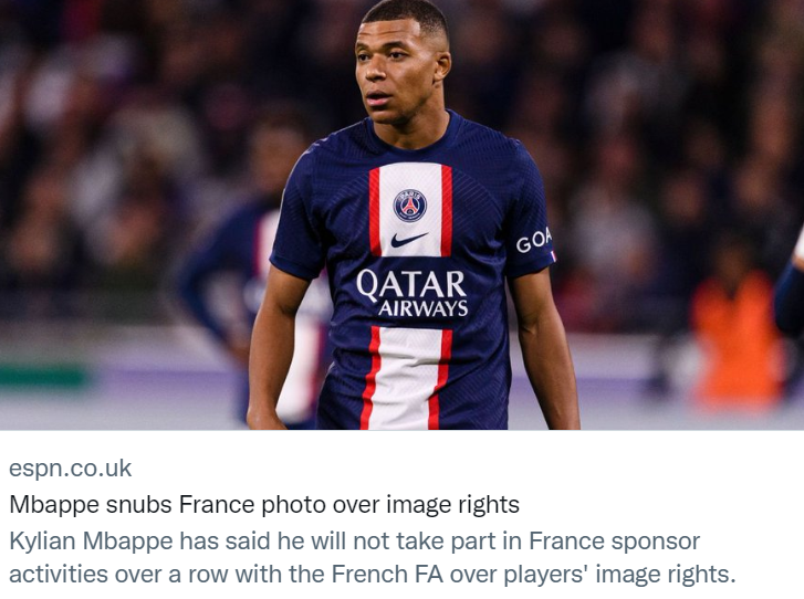 唯彩看球讯此前,因为肖像权方面的问题,姆巴佩是拒绝出席法国队包括大合照在内的所有活动,有消息称姆巴佩拒绝出席是因为他不想自己的肖像出现在博彩公司以及快餐公司方面,而近期,作为法国队的赞助商之一,著名快餐品牌KFC也是回应了此事。