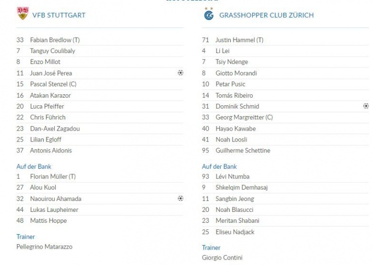 本场比赛多米尼克-施密特在开场第2分钟便为草蜢取得领先。不过斯图加特在第39分钟和第84分钟分别由艾哈马达和胡安-佩雷拉完成破门,最终草蜢1-2被对手逆转。此役,中国球员李磊身披4号球衣,代表草蜢首发并打满全场。