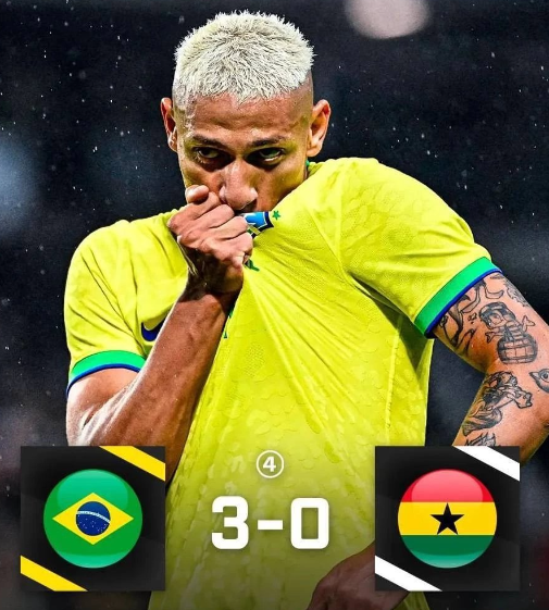 全场比赛结束,巴西3-0战胜加纳。