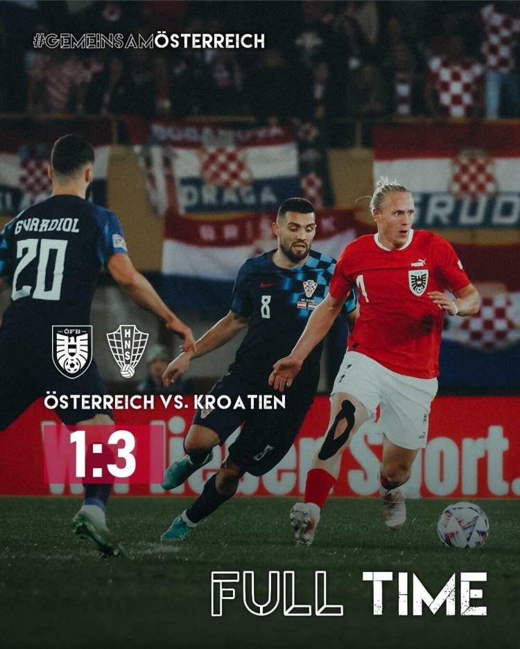 最终,克罗地亚3-1完胜奥地利,晋级欧国联半决赛。