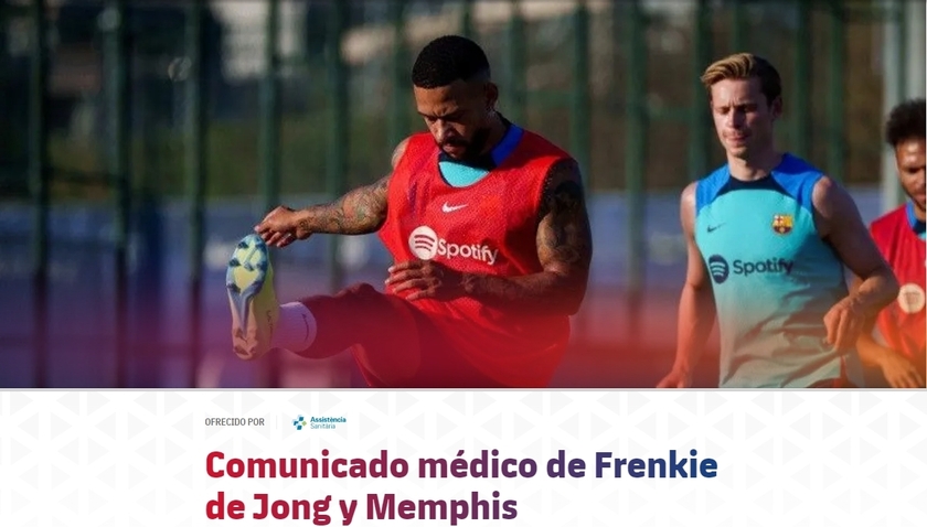 唯彩看球讯 今日巴萨官方公布:德容与德佩确认受伤,德容左大腿肌腱拉伤,德佩左大腿股二头肌受伤。