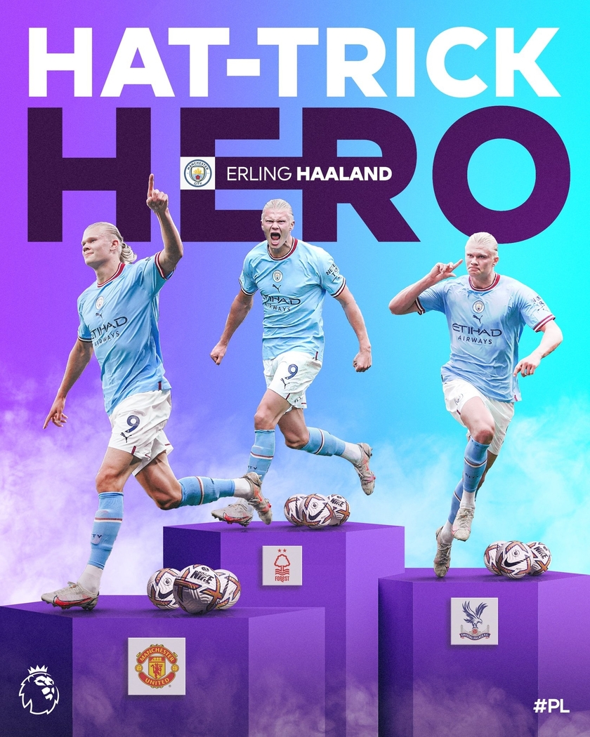 OPTA统计表明,哈兰德是英超历史上首位连续3个主场比赛戴帽的球员。