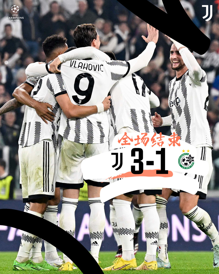 唯彩看球讯 北京时间10月6日凌晨3:00,欧冠H组第三轮,尤文图斯主场对战以色列球队海法马卡比。上半场比赛,迪马利亚助攻拉比奥得分。下半场比赛,弗拉霍维奇得分,拉比奥头球后蹭破门。海法马卡比球员邓恩单刀球晃过什琴斯尼为球队扳回一分。全场比赛结束,尤文图斯在主场3-1击败海法马卡比获得了本赛季的欧冠首胜。
