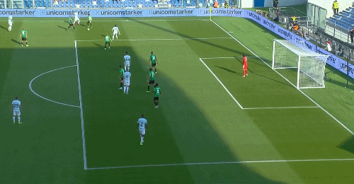第60分钟,罗热里奥前场左边路高空球横传到禁区内,后点弗拉泰西包抄凌空弹射破门,萨索洛扳平比分,1-1!