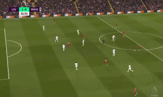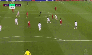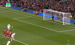 第43分钟,西汉姆右路唐斯传中,鲍文接球时被戈麦斯踢到,虽然球有打在鲍文手臂的嫌疑,主裁亲自到场边VAR回看后判给西汉姆点球。鲍文自己主罚的点球被阿利松判断准确扑出。补时第2分钟,西汉姆左路传中,乔戈麦斯头球解围顶给了本米,后者的射门被挡出底线。上半场利物浦1-0领先西汉姆。