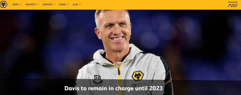 唯彩看球讯 狼队官方公告:临时主帅史蒂夫-戴维斯将继续执教一线队,直到2023年。