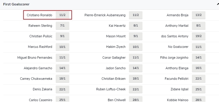 有趣的是,C罗的名字出现在本场比赛首开记录球员赔率中,以11/2的赔率和奥巴梅扬一起并列赔率第一。