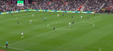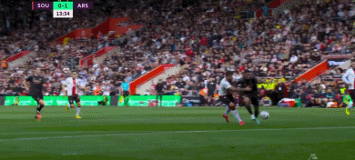 第70分钟,佩劳左侧回传,阿里博低射,拉姆斯代尔把球没收。第79分钟,蒂尔尼左侧摆脱埃尔尤努西后切入禁区回传,厄德高抽射破门,边裁示意蒂尔尼传球时皮球已整体过底线,进球无效。比赛结束,阿森纳1-1战平南安普敦。