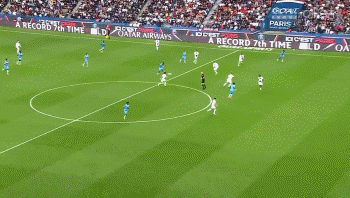 22分钟内马尔禁区弧左侧大力兜射,皮球稍稍偏出。24分钟内马尔中路挑传,索莱尔禁区中路反越位过门将后将球送入空门,1-1,巴黎扳平比分,索莱尔连场破门!